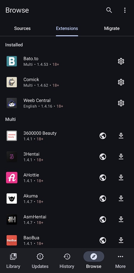 Select the one that suits your preferences. You can install multiple apps together. All of these apps are compatible with Mihon extensions :
